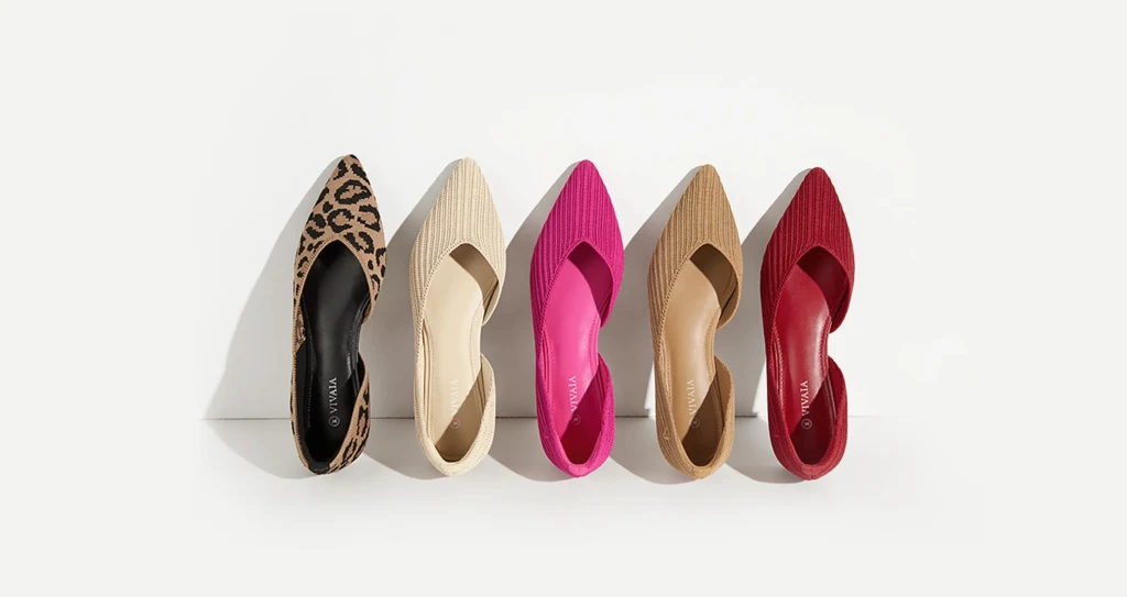 - VIVAIA: Elegant, European-inspired silhouettes. Think chic pointed-toe flats, graceful loafers, Mary Janes, and even heeled styles—all crafted with minimal seams and effortless sophistication.